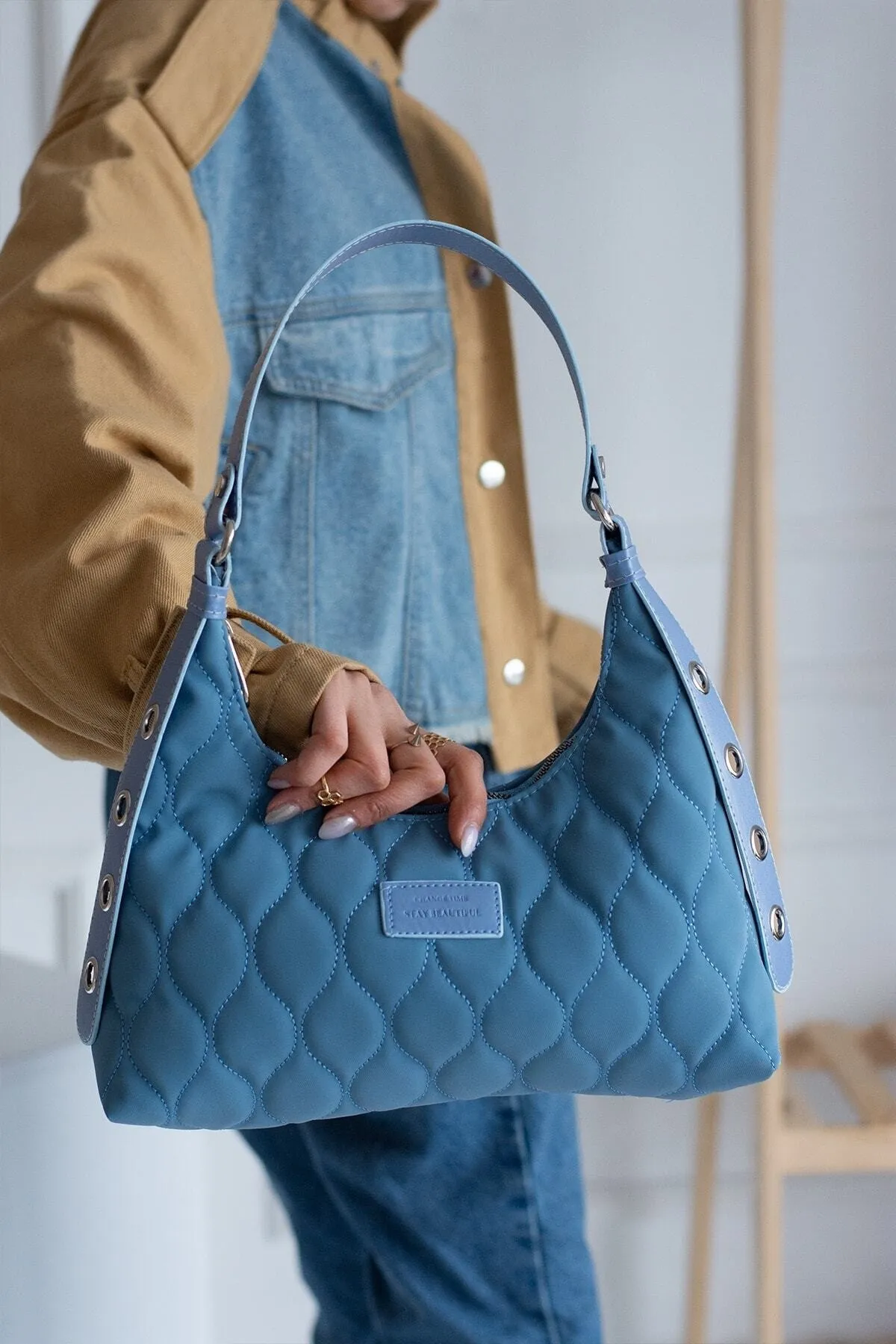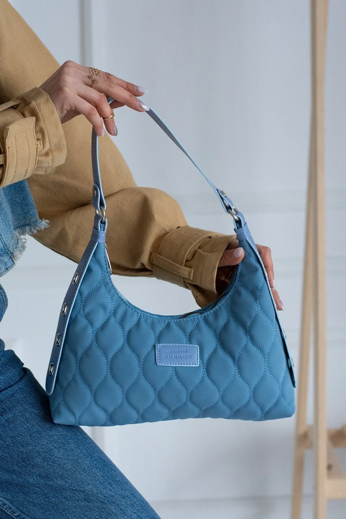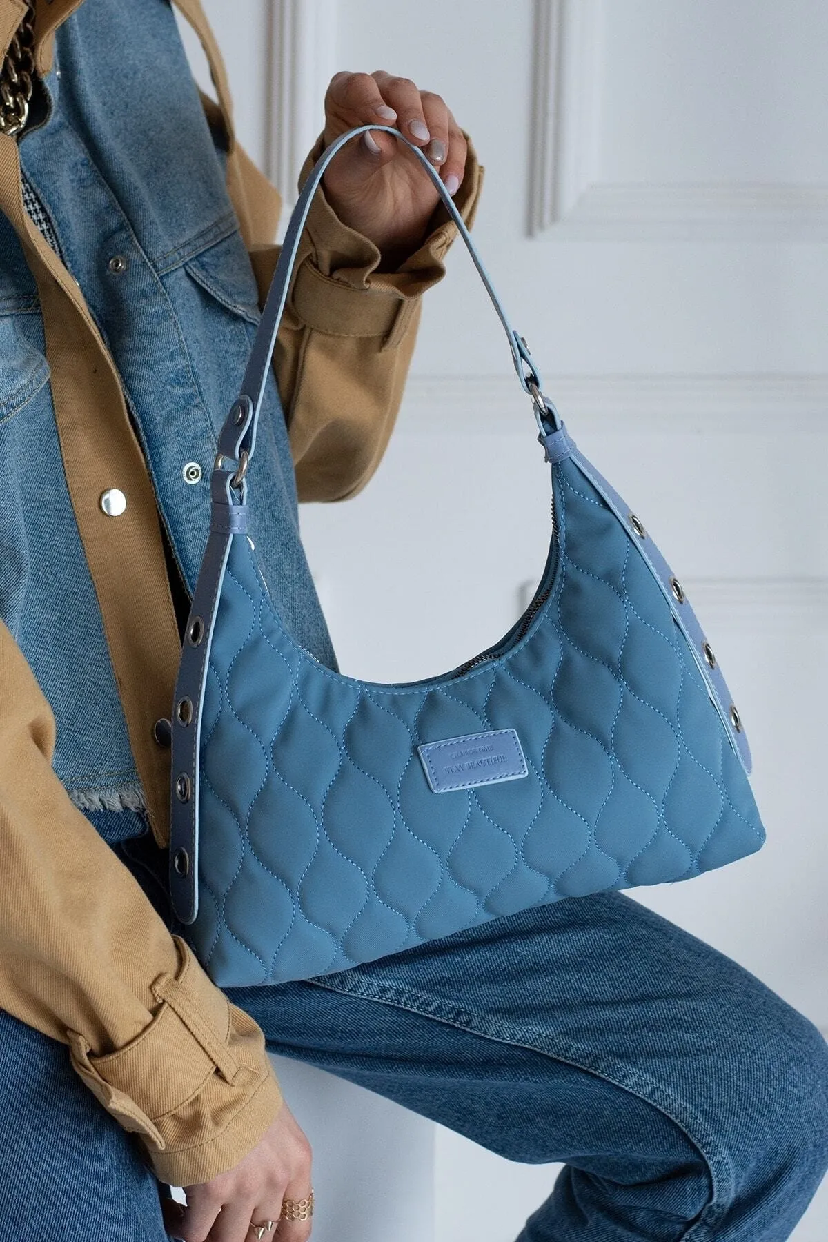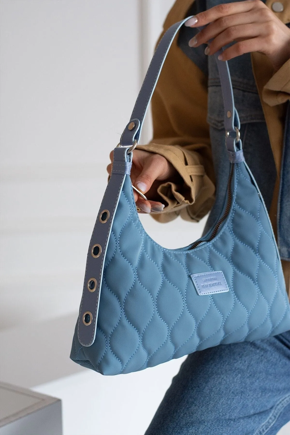 Kadın Açık Mavi Kapitone Desenli Baget El Ve Omuz Çantası