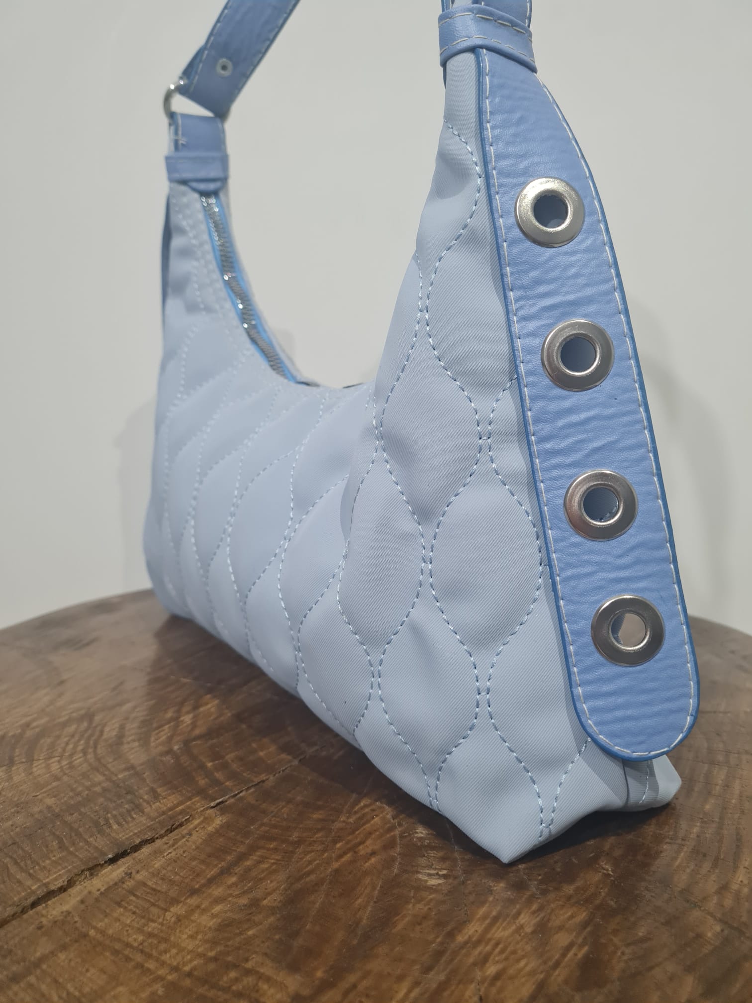 Kadın Bebe Mavi Kapitone Desenli Baget El Ve Omuz Çantası