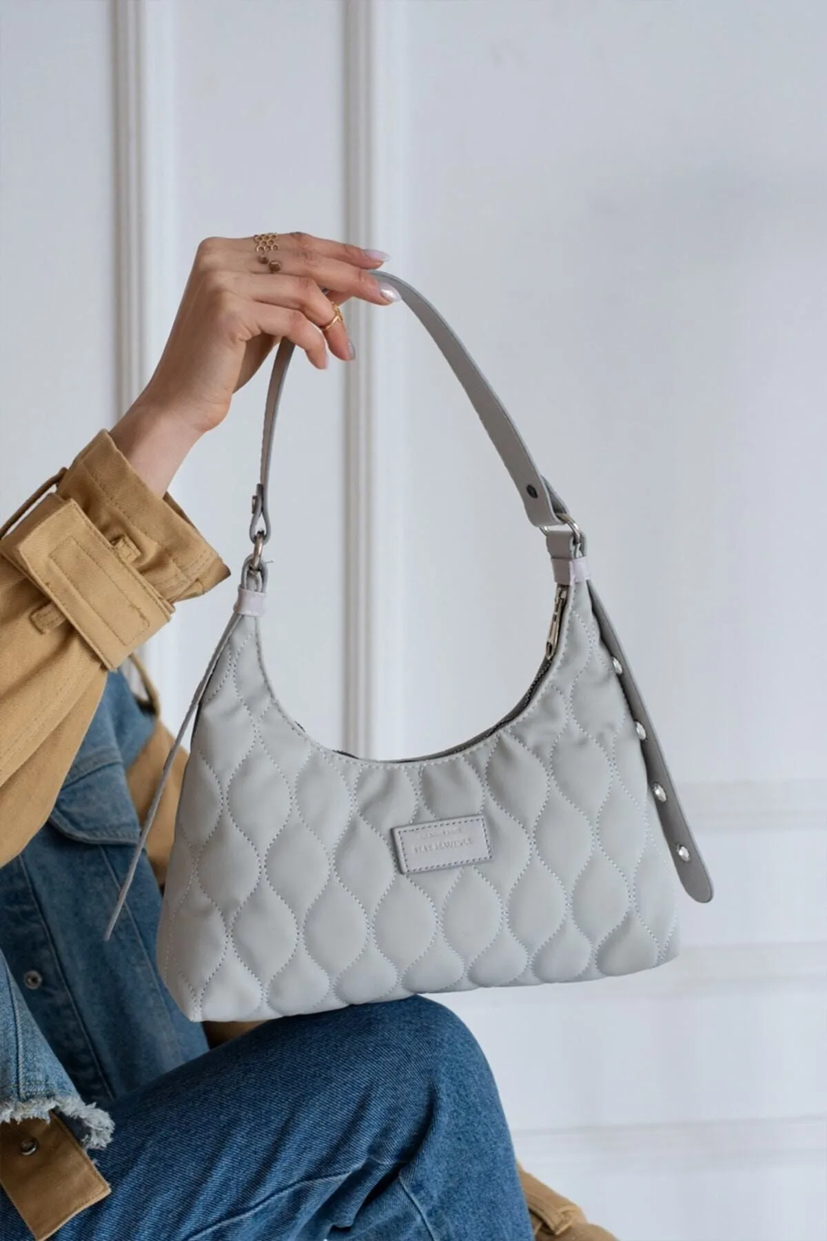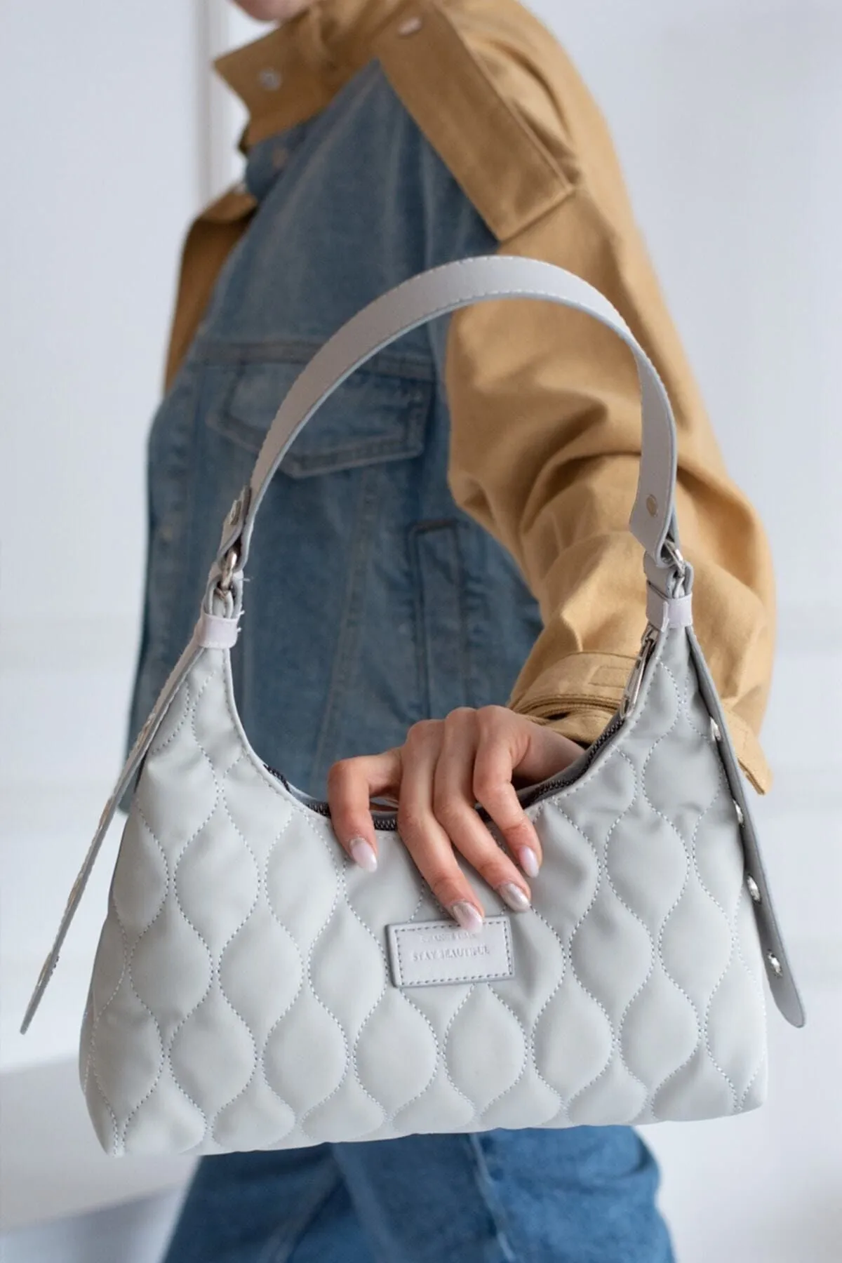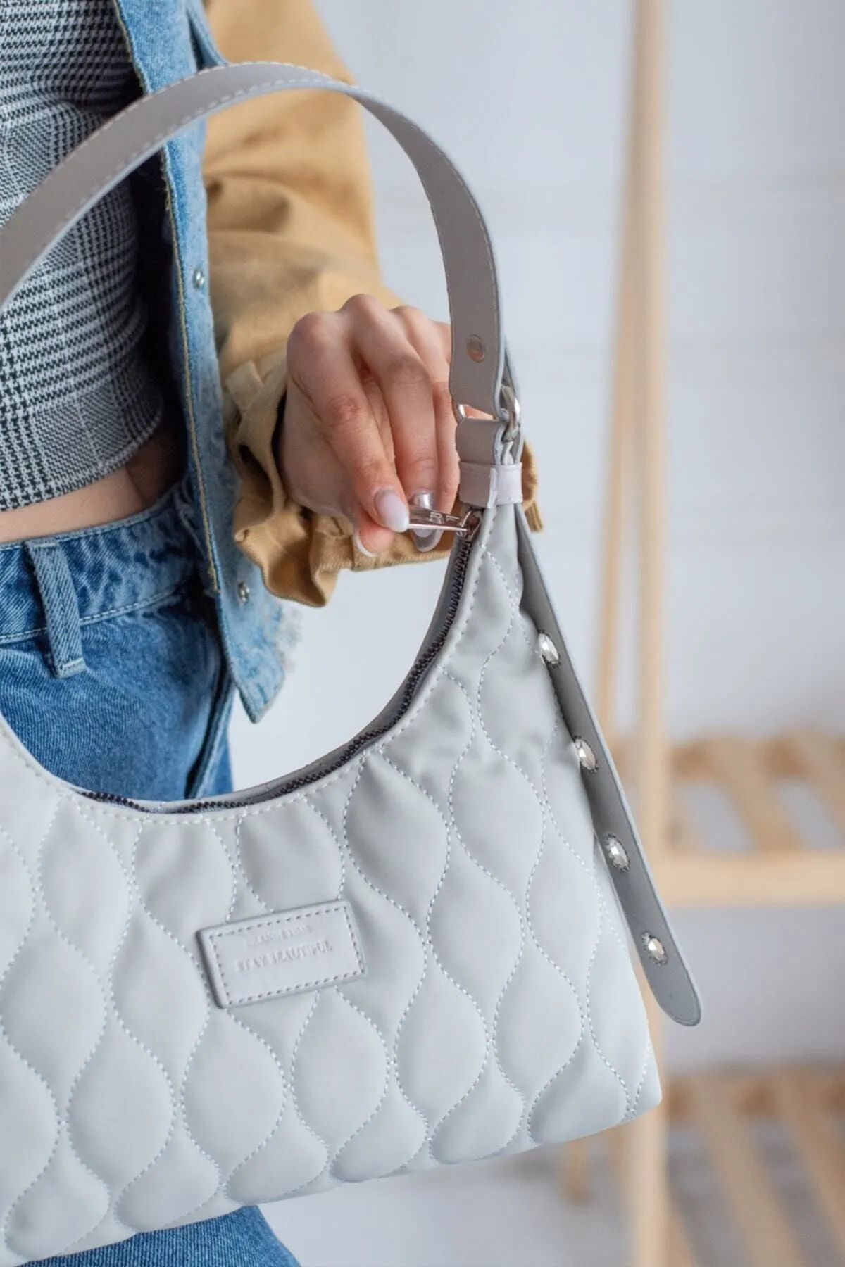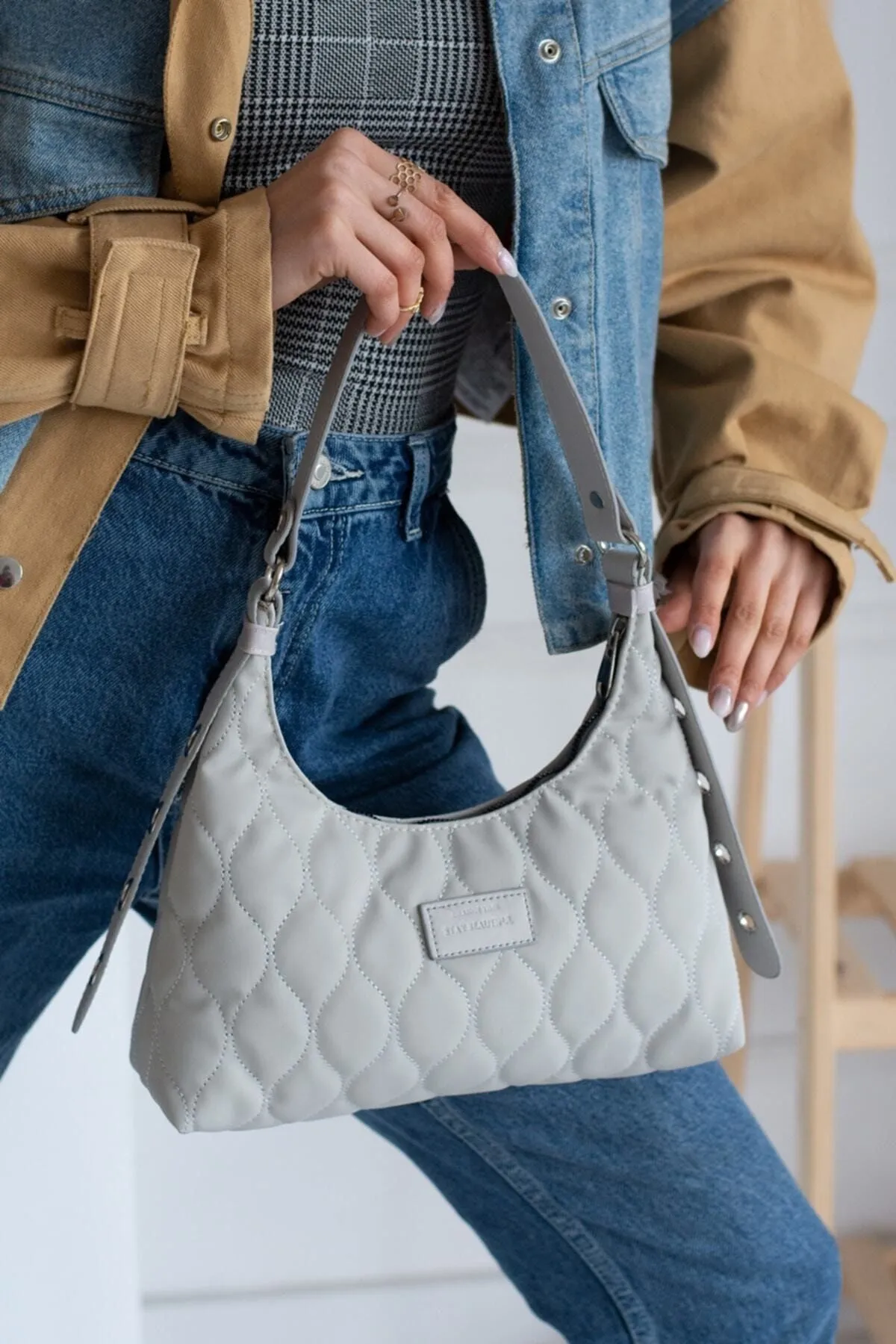 Kadın Gri Kapitone Desenli Baget El Ve Omuz Çantası