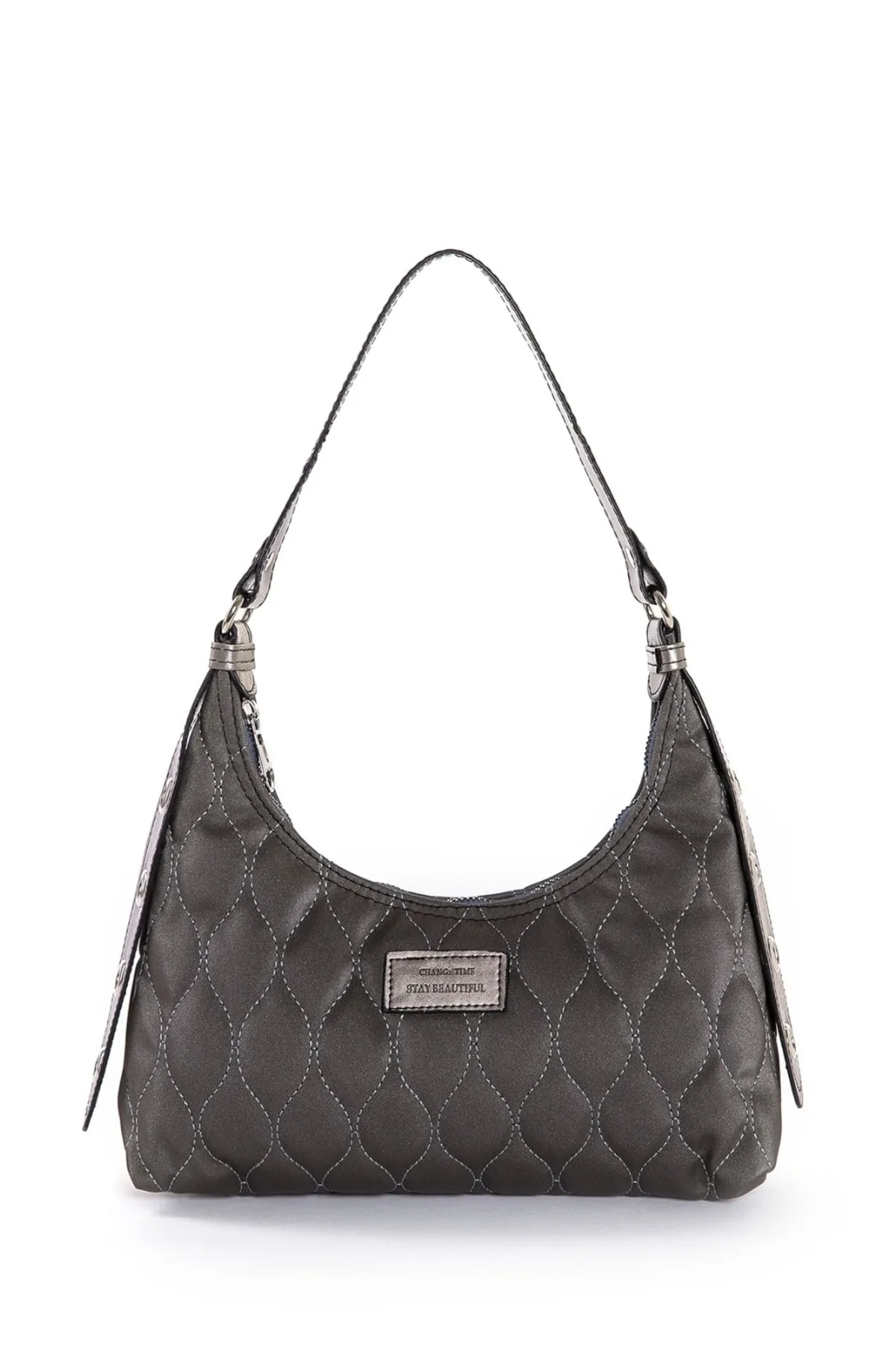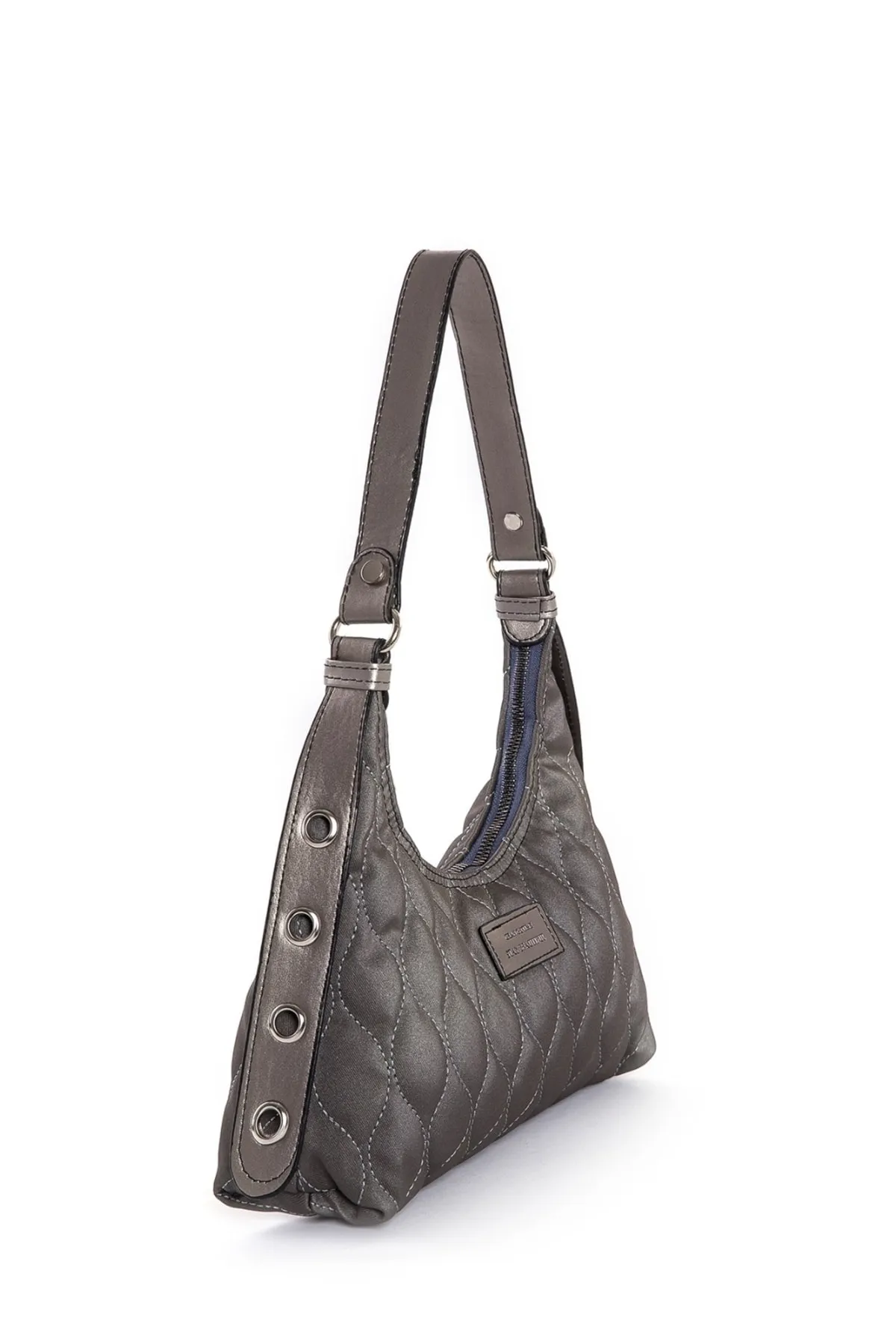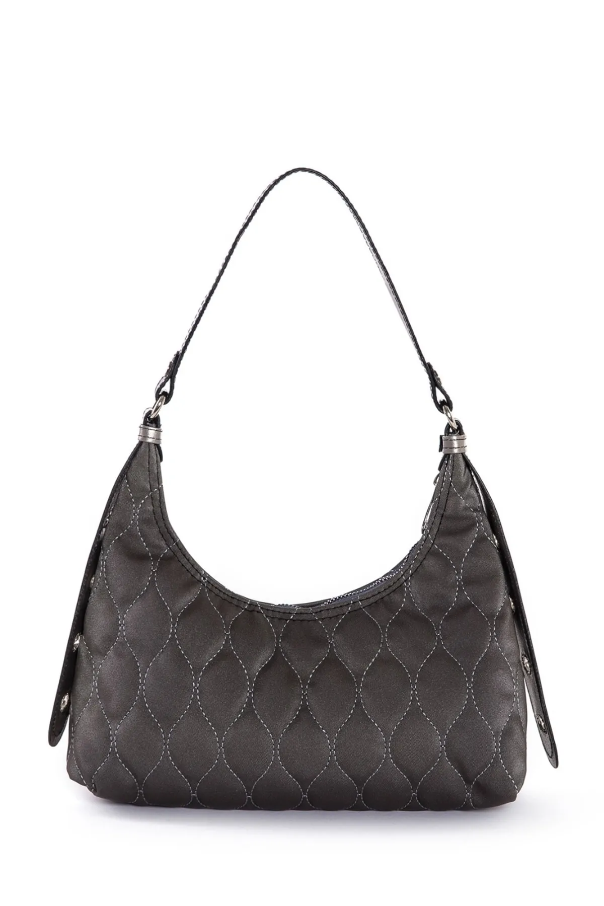 Kadın Koyu Gri (Antrasit) Kapitone Desenli Baget El Ve Omuz Çantası