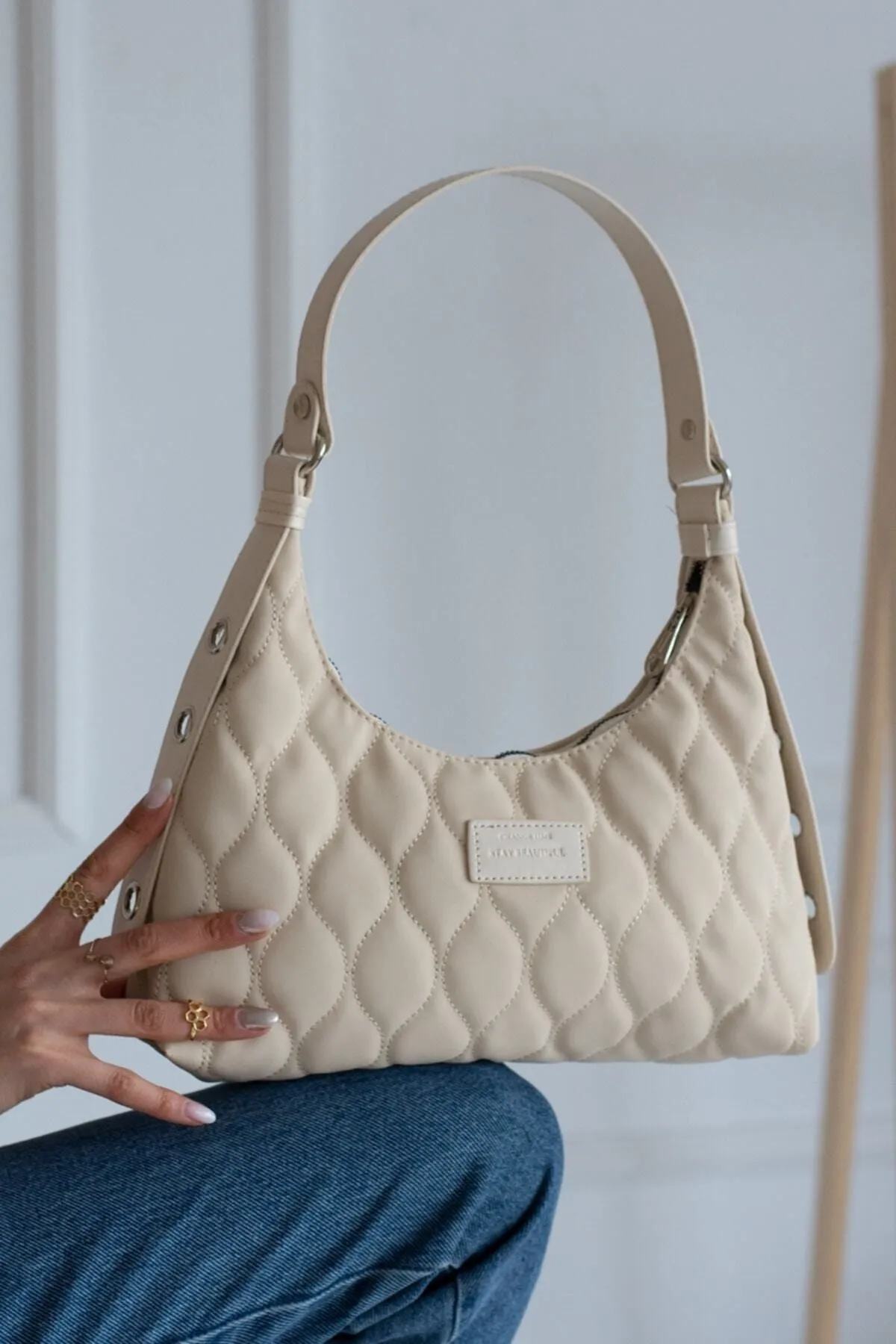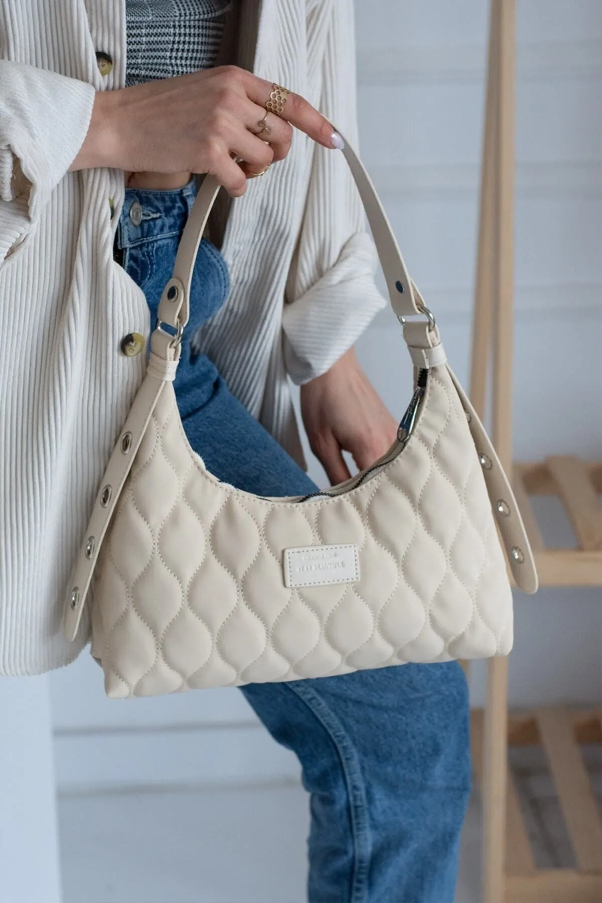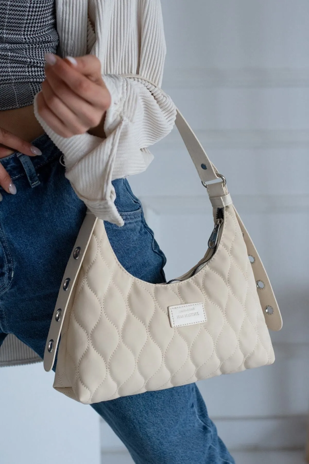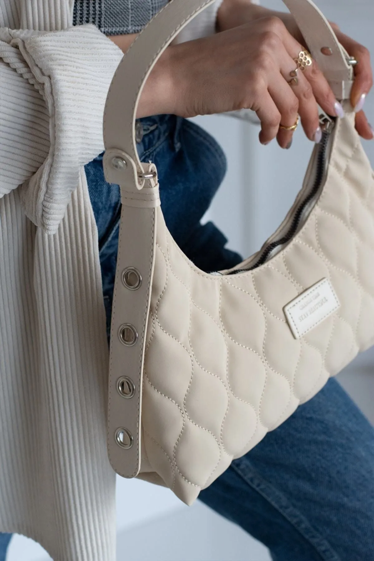 Kadın Krem Kapitone Desenli Baget El Ve Omuz Çantası