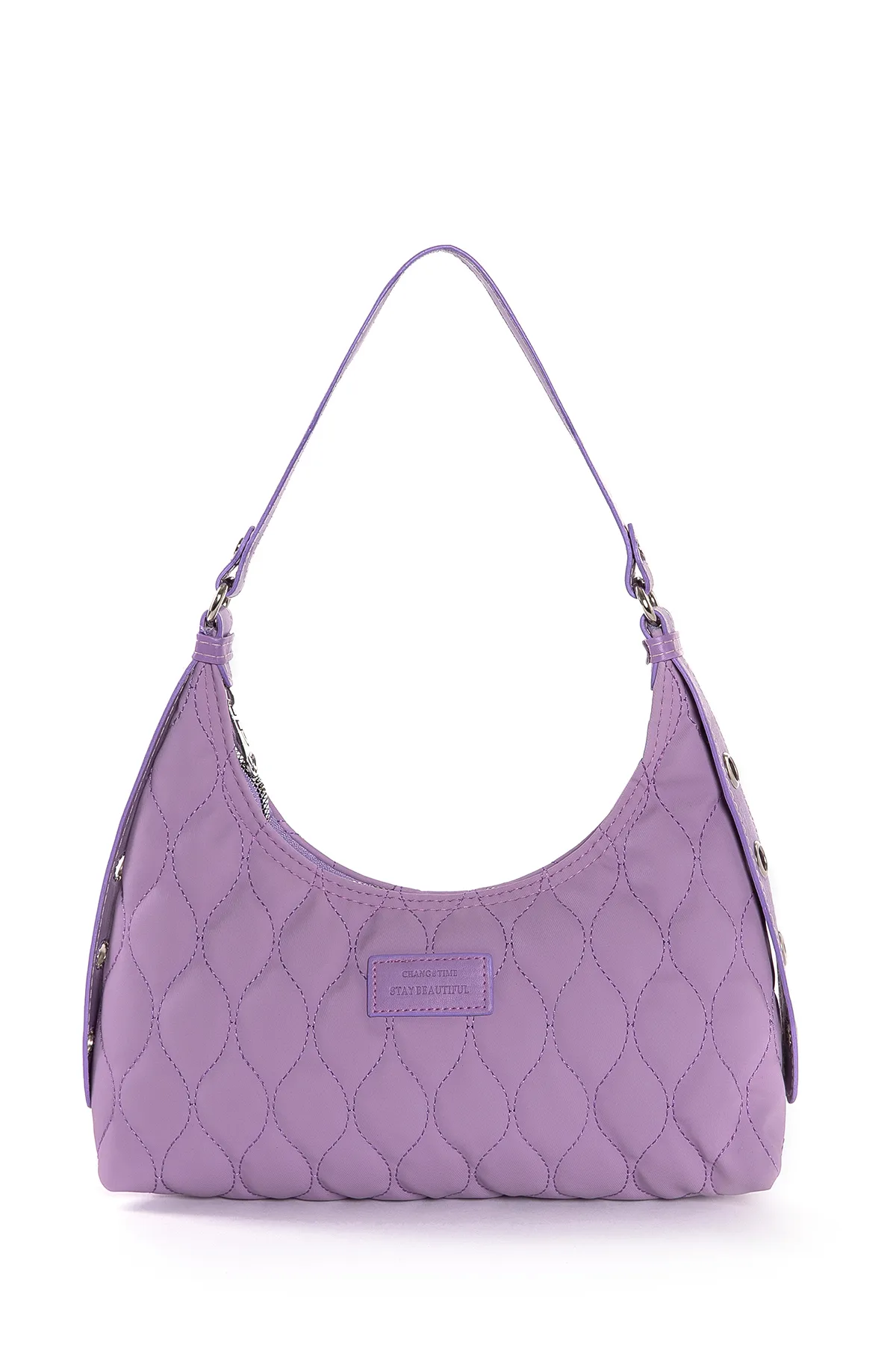 Kadın Lila Kapitone Desenli Baget El Ve Omuz Çantası