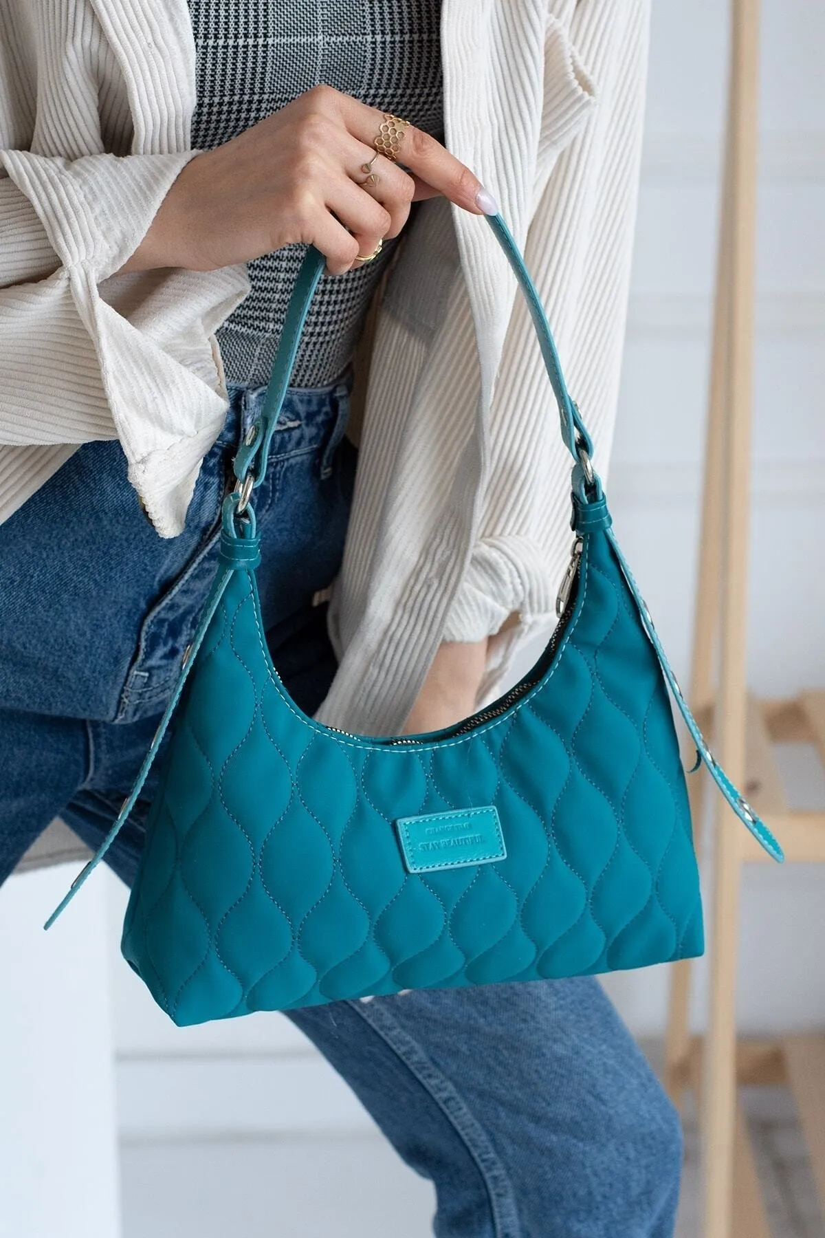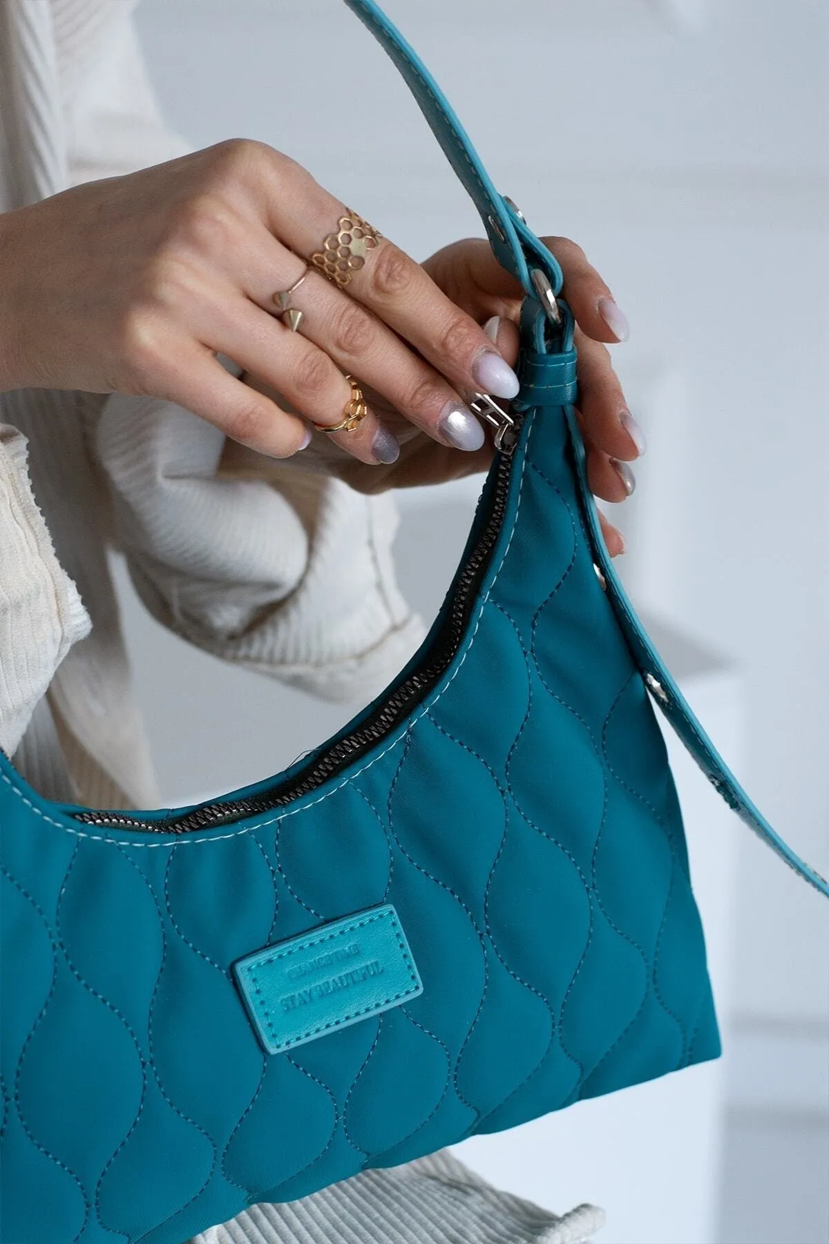 Kadın Petrol Mavisi Kapitone Desenli Baget El Ve Omuz Çantası
