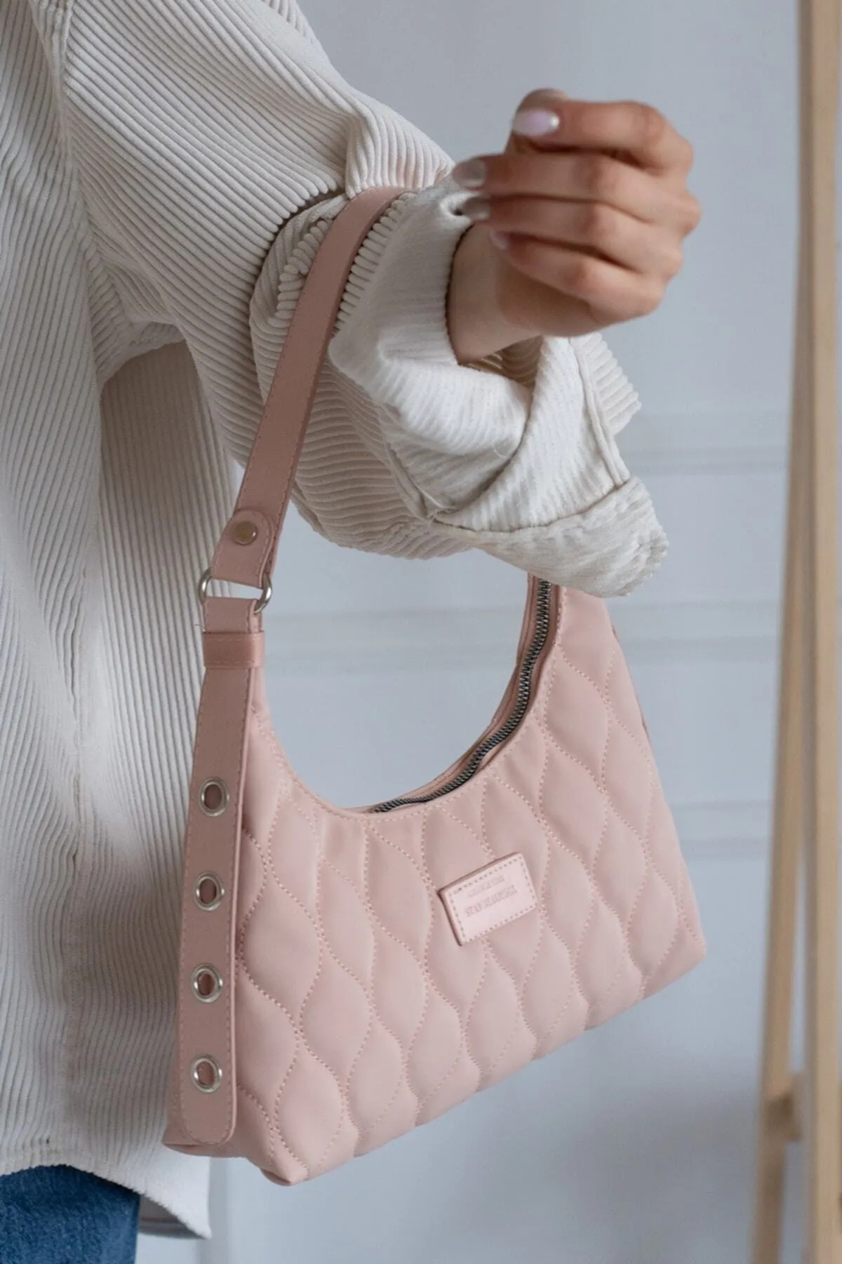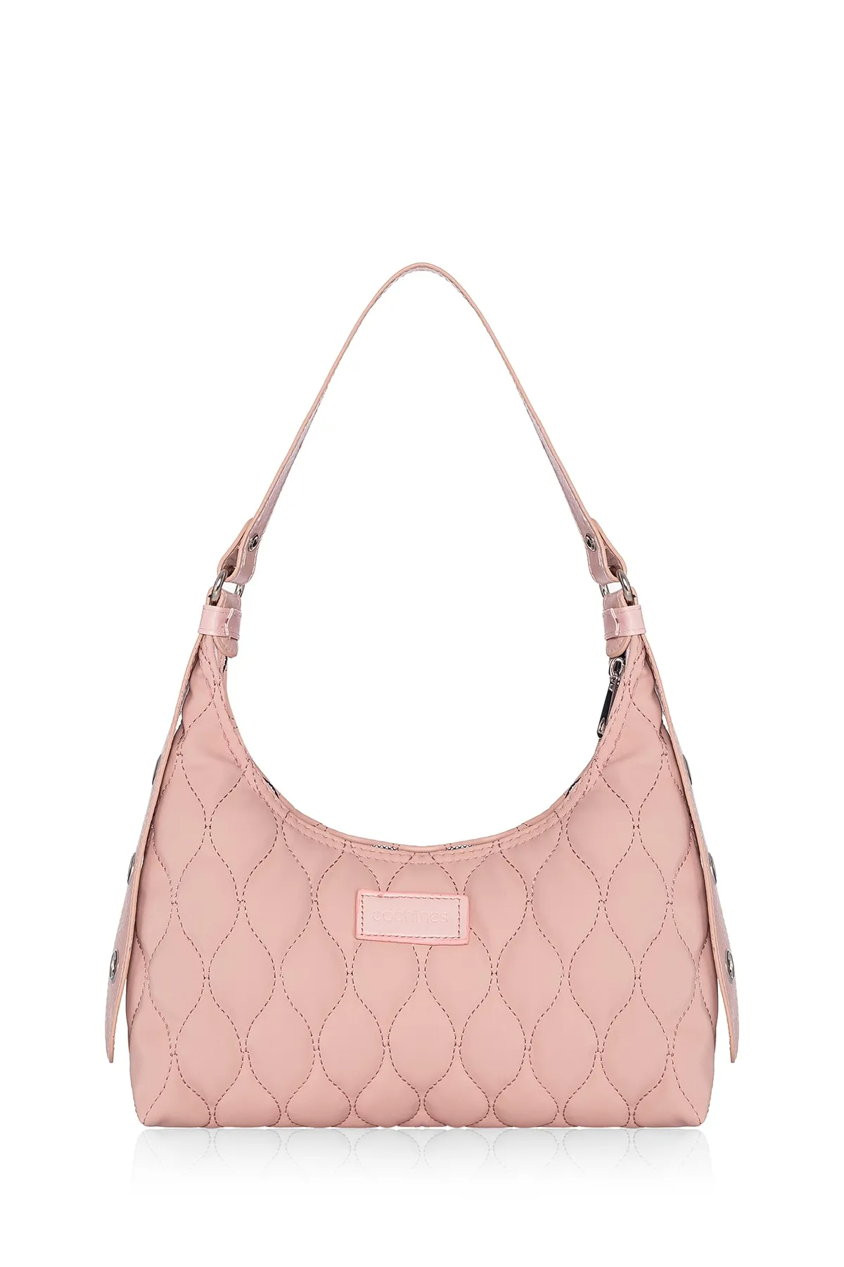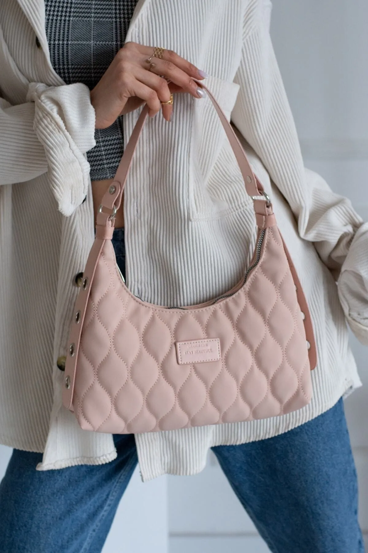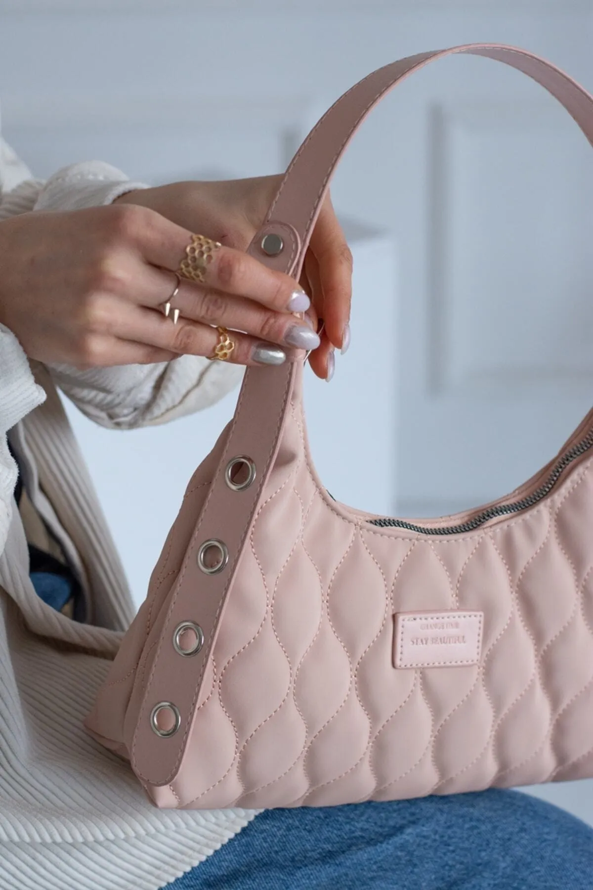 Kadın Pudra Kapitone Desenli Baget El Ve Omuz Çantası