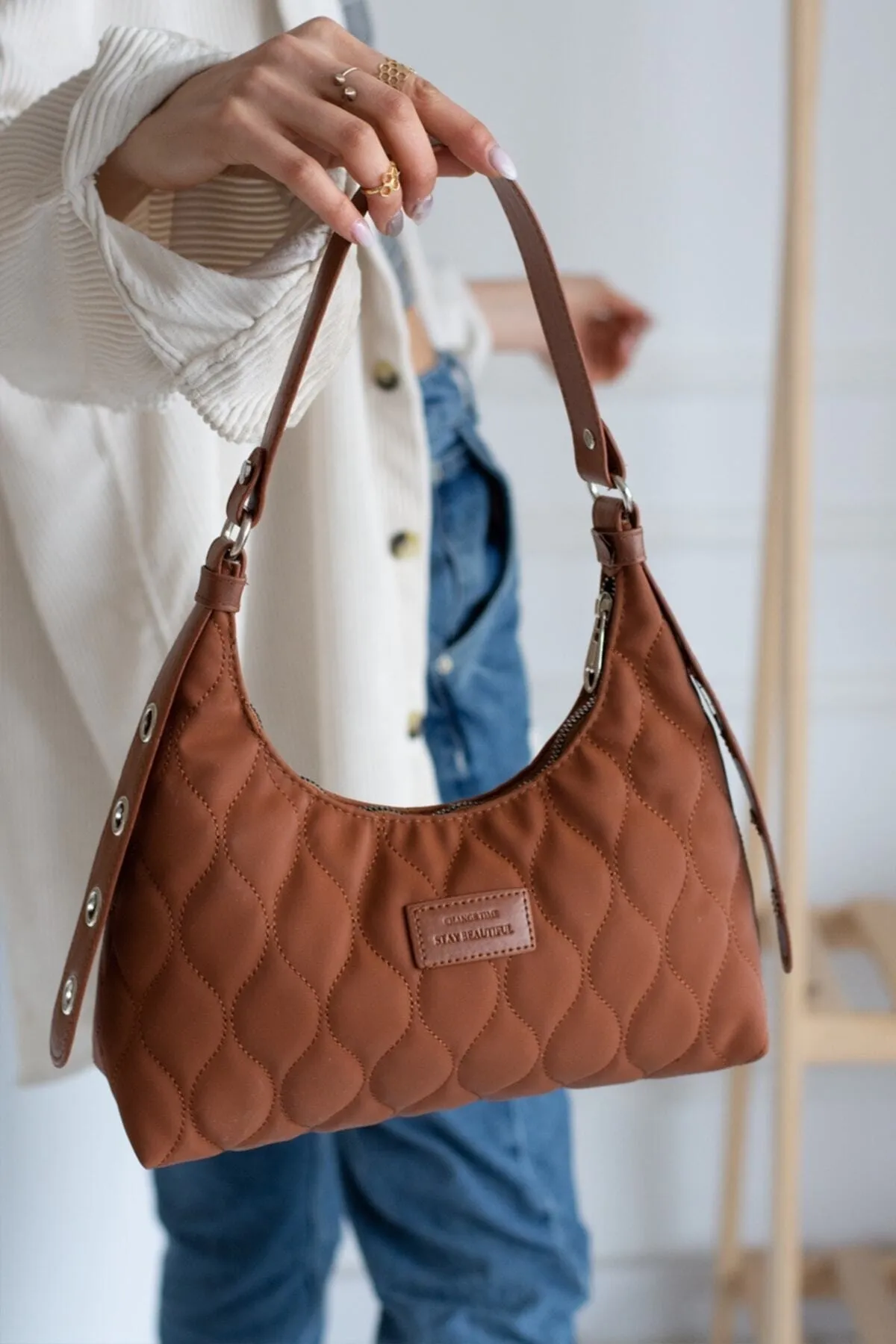 Kadın Taba Kapitone Desenli Baget El Ve Omuz Çantası
