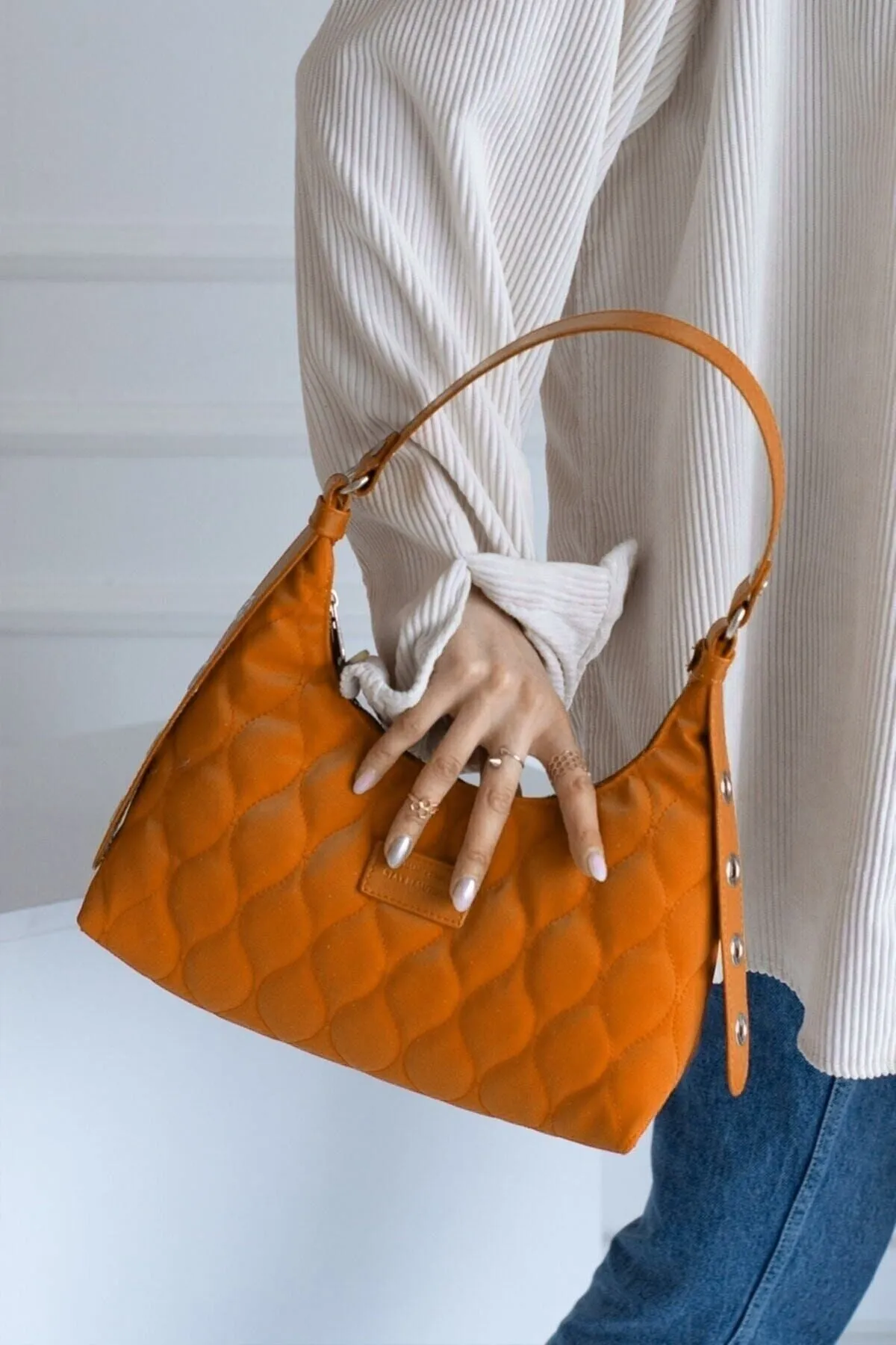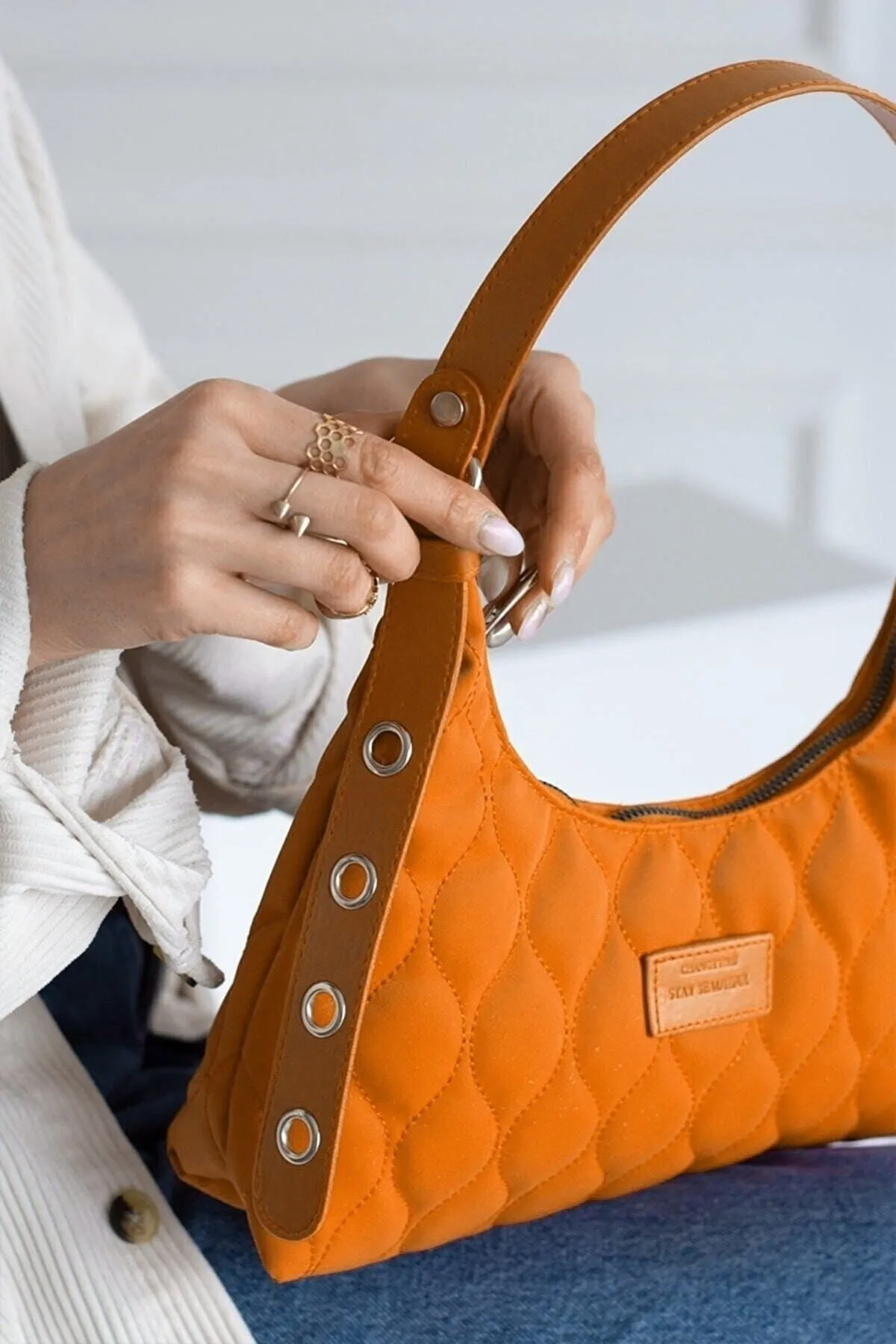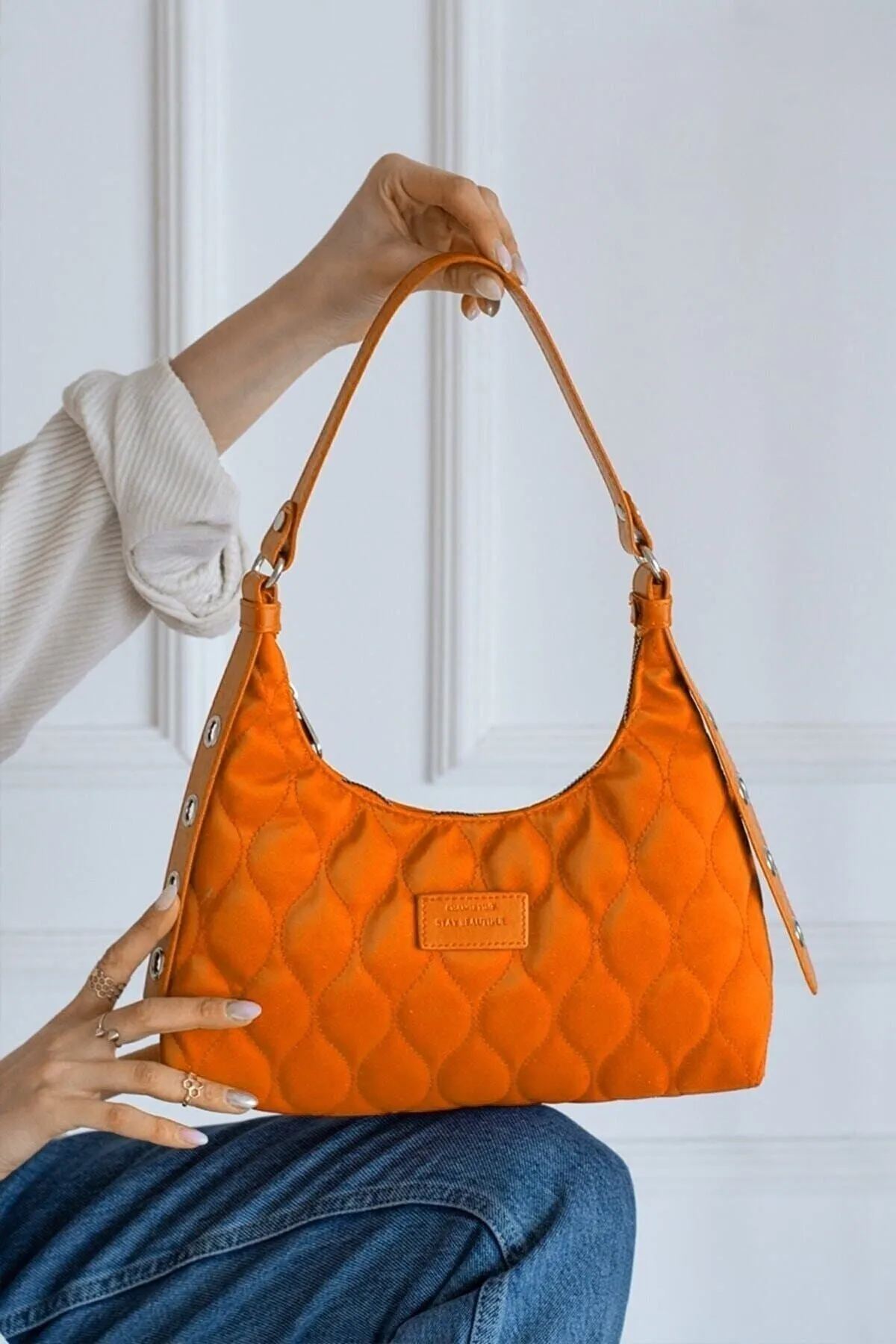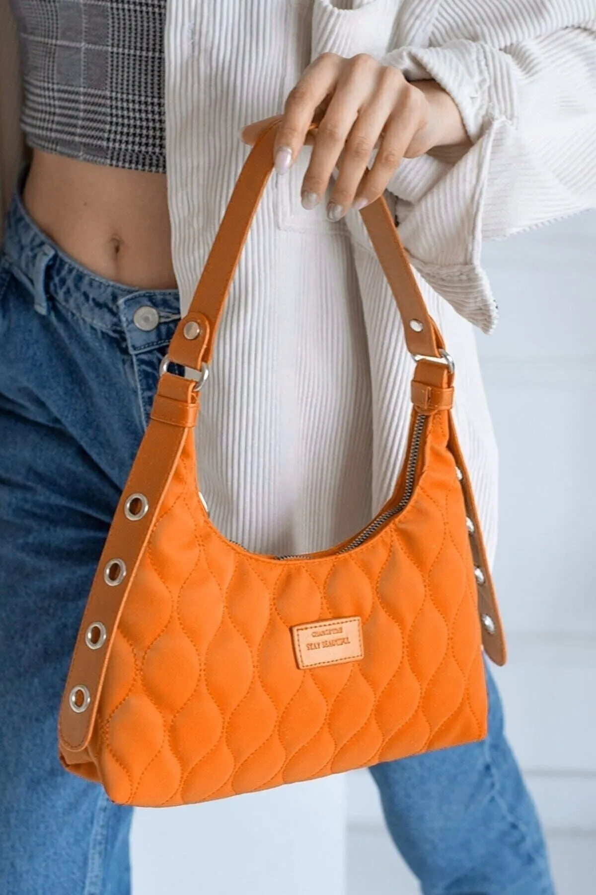 Kadın Turuncu Kapitone Desenli Baget El Ve Omuz Çantası