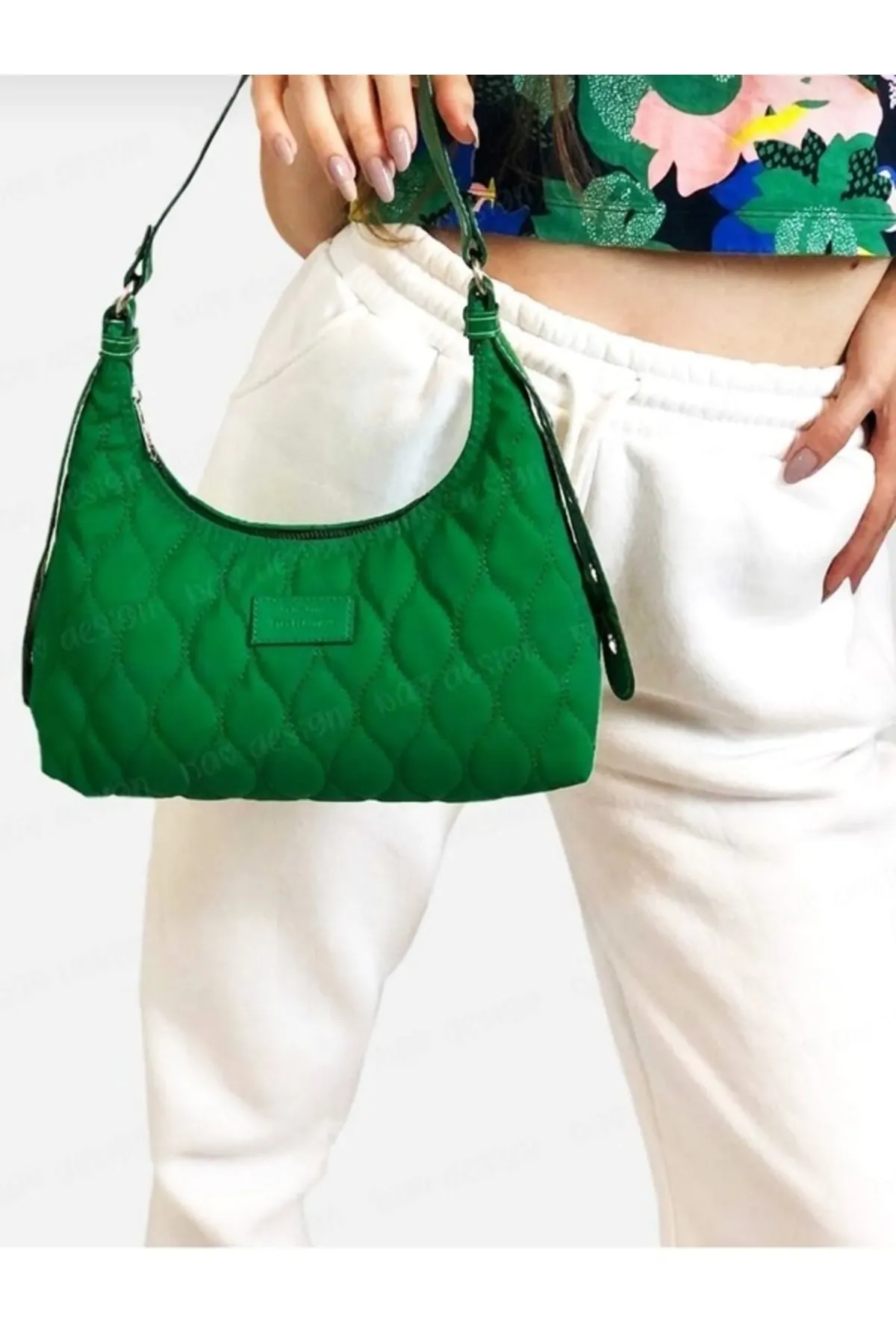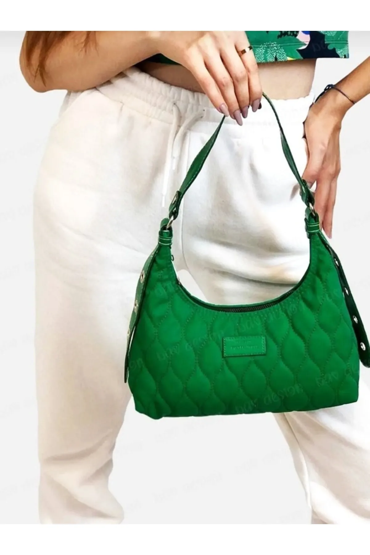 Kadın Yeşil Kapitone Desenli Baget El Ve Omuz Çantası